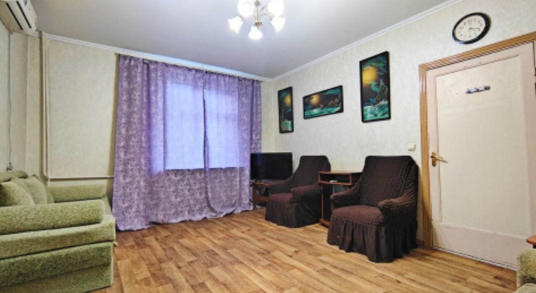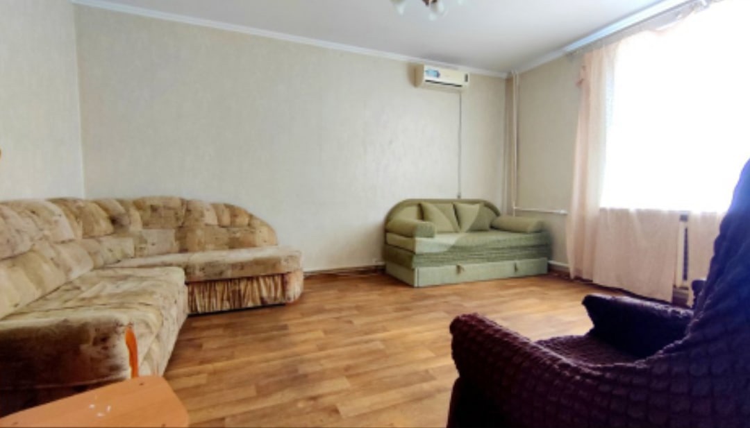 Состояние квартиры хорошее, чистая, просторная: есть 2 дивана, один угловой, шкаф, тумба