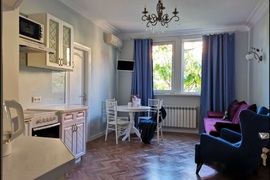 В пешей доступности главные достопримечательности города: 2 мин до Центрального рынка, 5 минут до детского Комсомольского парка, 10 мин до Артбухты, пляжа Хрустальный и до Большой Морской улицы. Всего 20 минут на пароме до пляжей Учкуевка (песок) и Любимовка (галька).