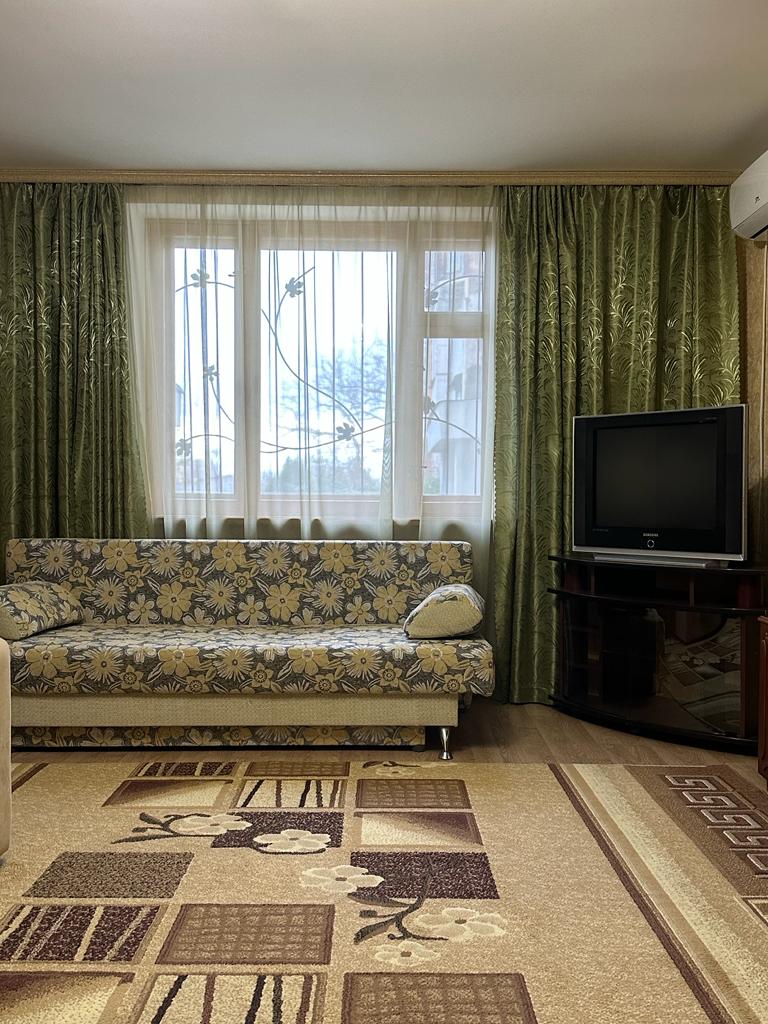В квартире имеются: 2 дивана, телевизор, огромный шкаф, кондиционер.