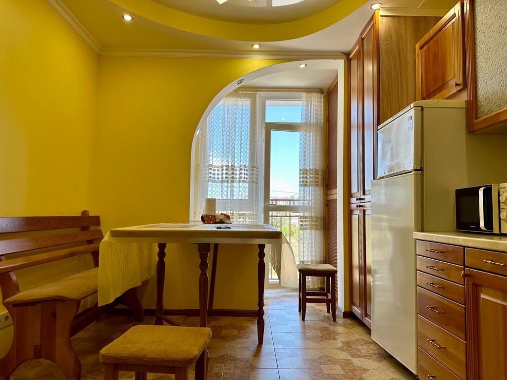 Имеется балконная зона с возможностью полюбоваться на двор ,фонтан ! МОРЕ в шаговой доступности -от 3-5 минут ходьбы к Благоустроенному пляжу . В пешей доступности Динопарк, пляж Адмиральский, Омега. - 10-20 мин. ходьбы ; Рядом торговый центр Апельсин.