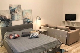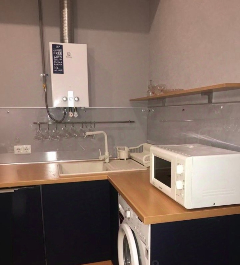 В квартире есть все необходимое для проживания: кондиционеры, газовая колонка, стиральная и посудомоечная машина.