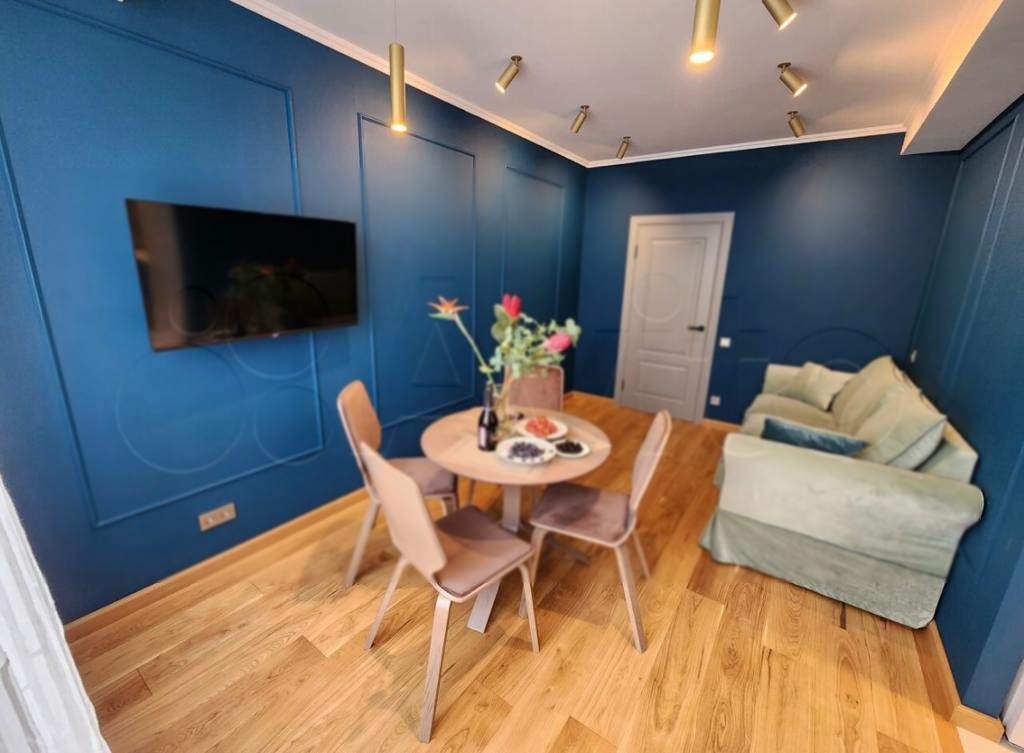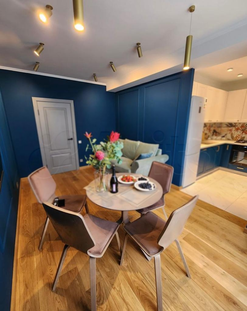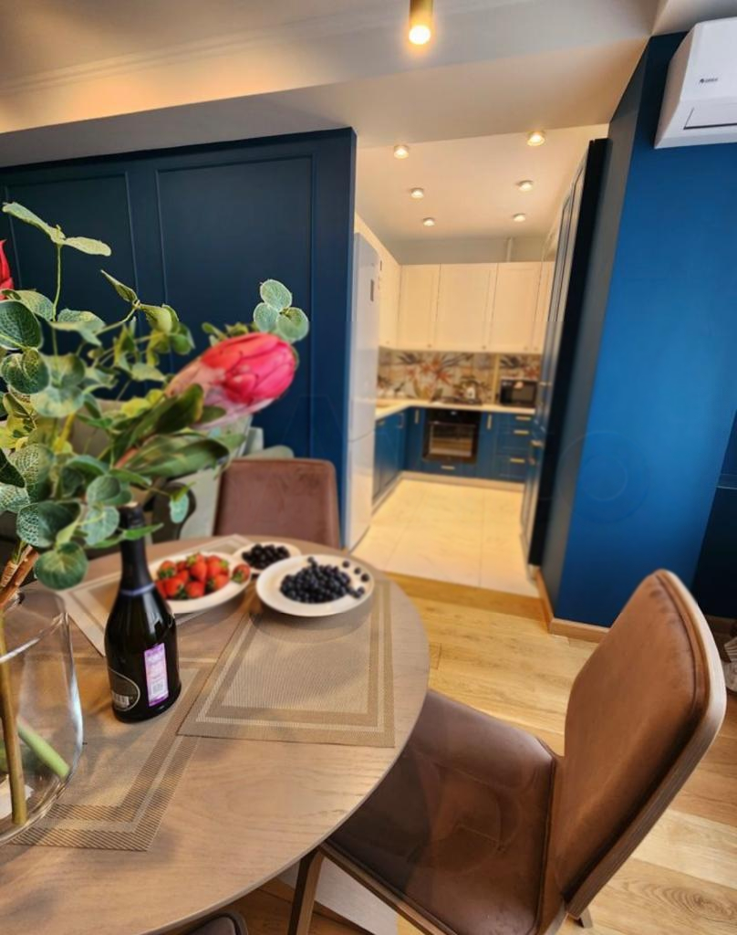 Синий цвет стен создаёт неповторимый характер и особое настроение её гостям.