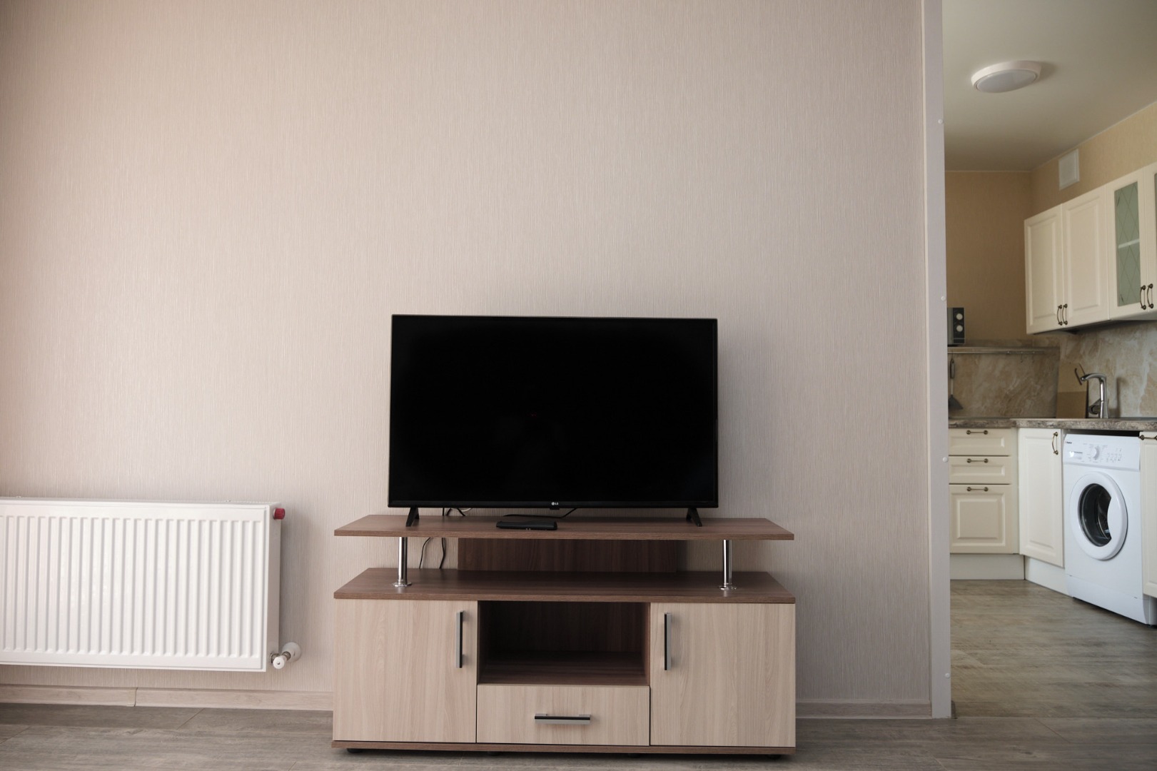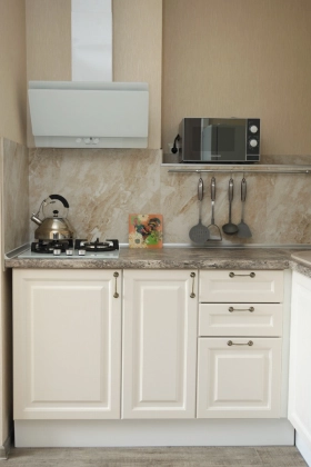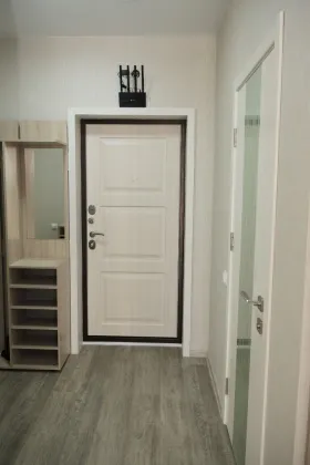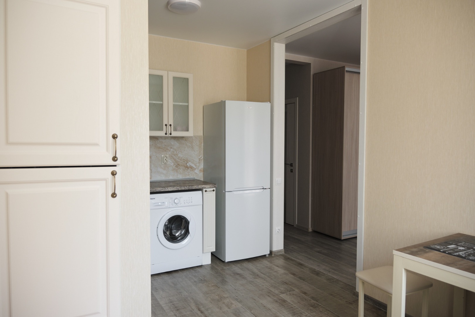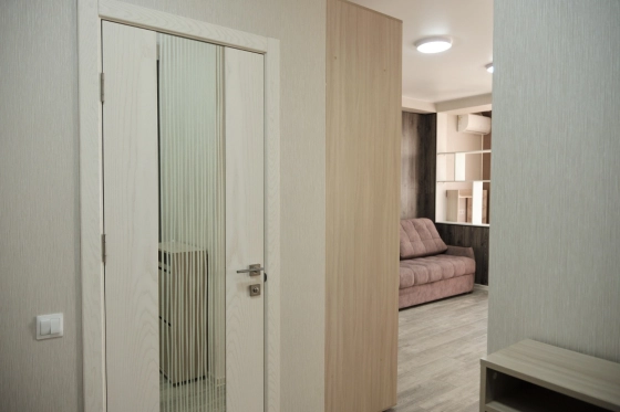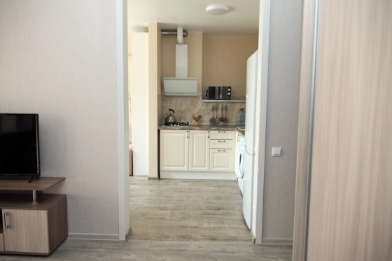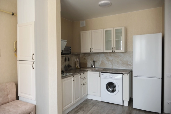 В квартире установлена современная мебель и функциональная бытовая техника.