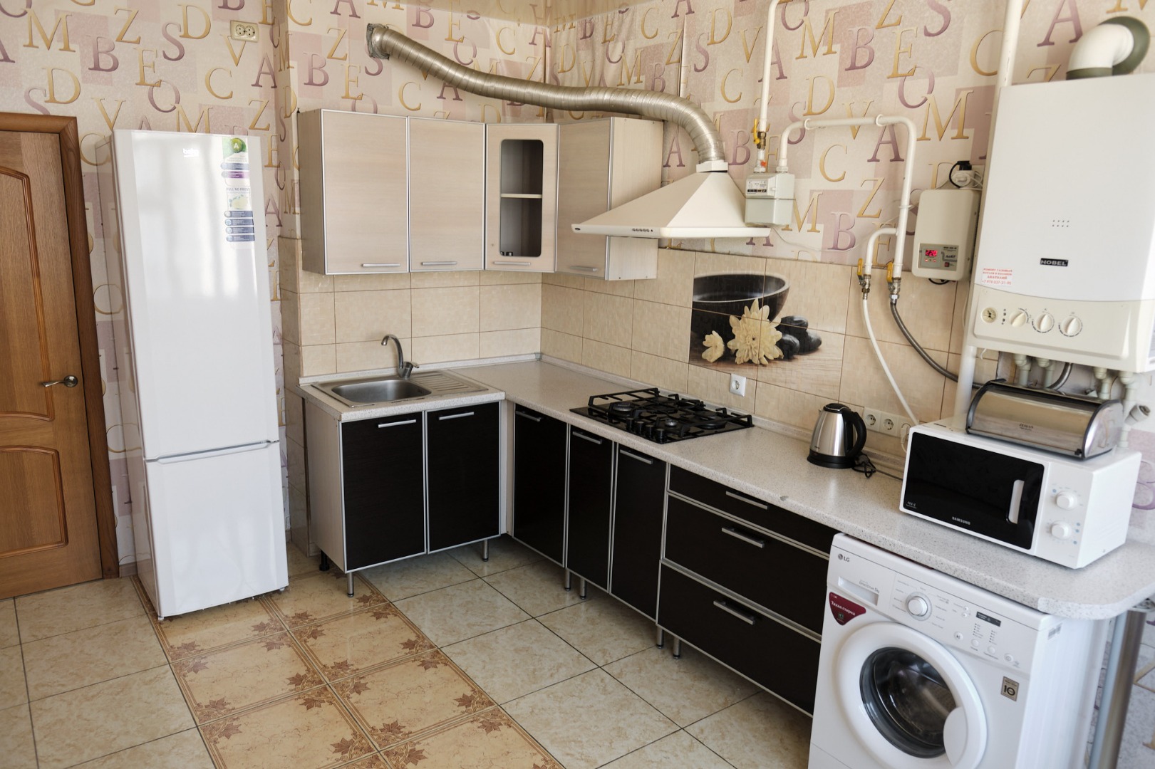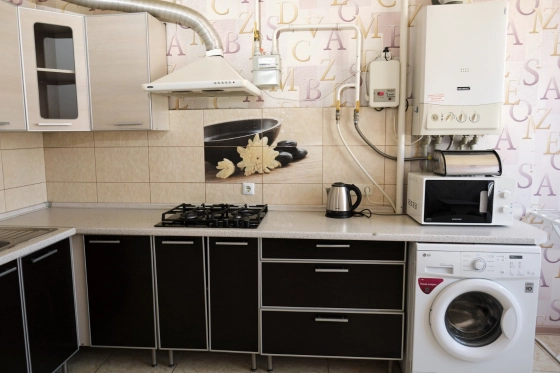 Все необходимое для проживания есть: кондиционер, стиральная машинка, холодильник, микроволновка.